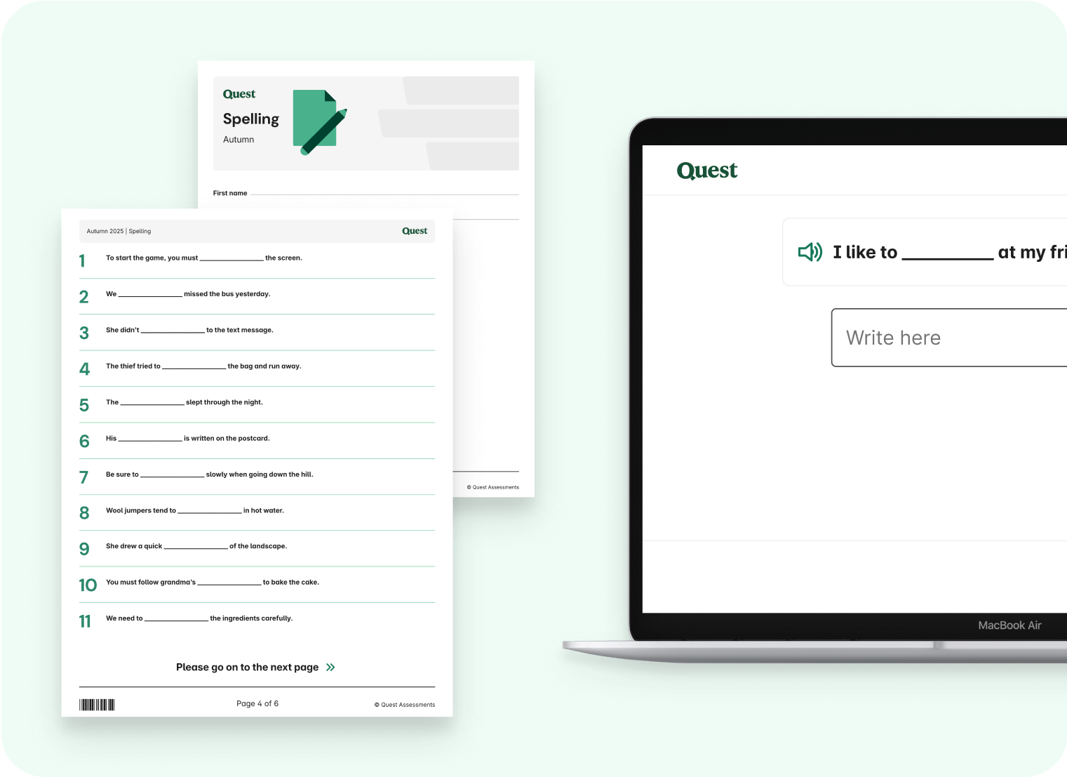 Quest Progress helps you assess quickly, see exactly where support is needed, and track progress over time — so you can focus on teaching, not admin.